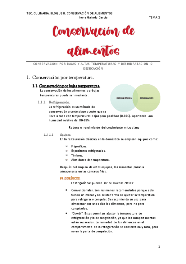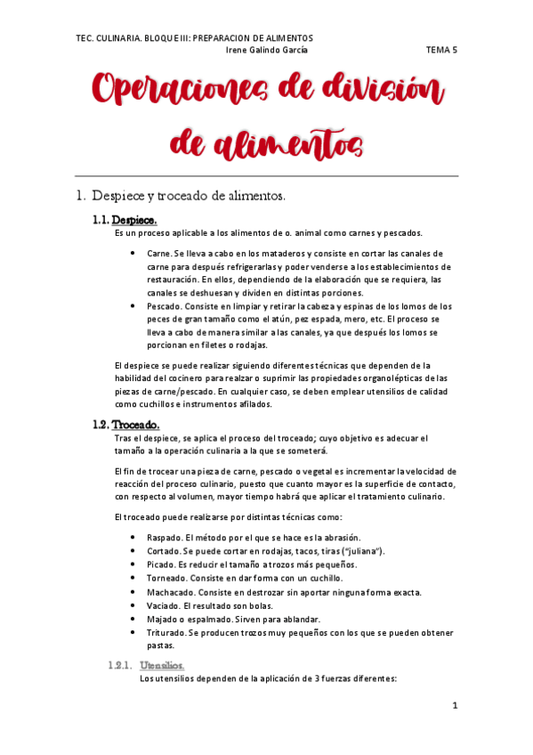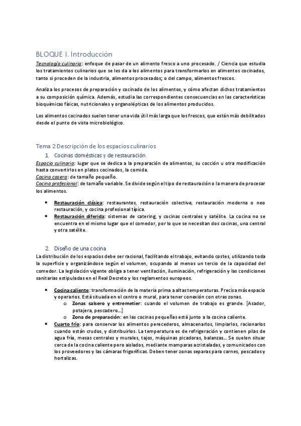 Tec. Culinaria. Apuntes bloque I y II 2022/23