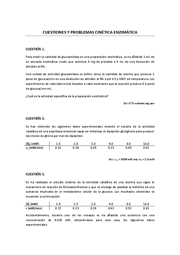 He publicado nuevos apuntes de 3º Tecnología de Bioprocesos: Cinetica enzimatica problemas.pdf