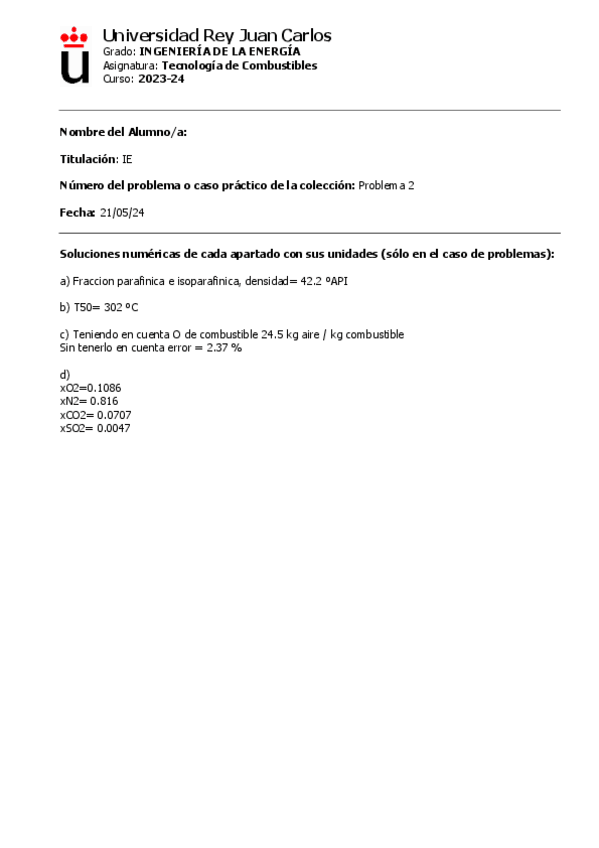 He publicado nuevos trabajos de 2º Tecnología de Combustibles: Problemas propuestos
