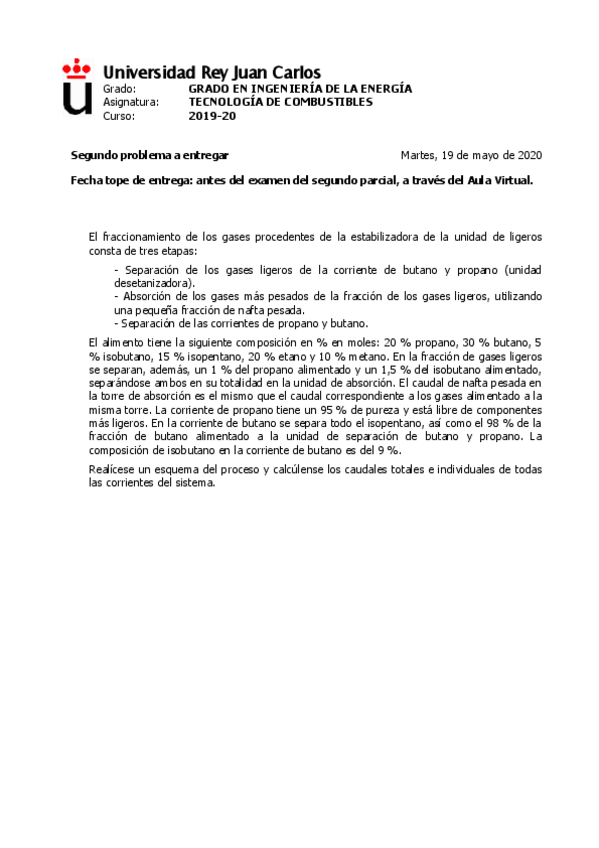 He publicado nuevos apuntes de 2º Tecnología de Combustibles: Problemas propuestos 2019/2020