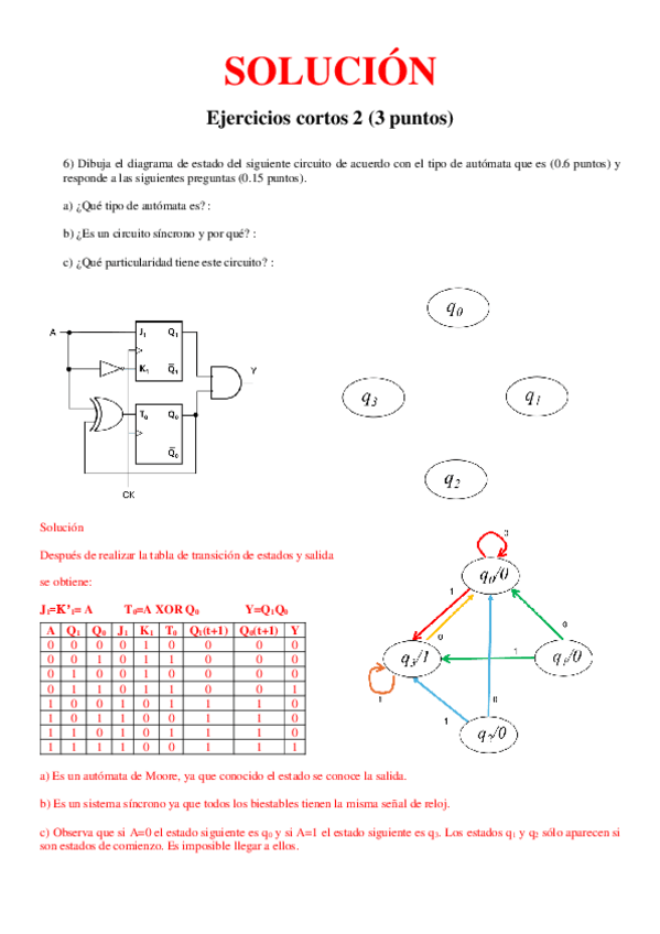 ejercicio resuelto de detector de secuencia mealy, con moore es muy parecido