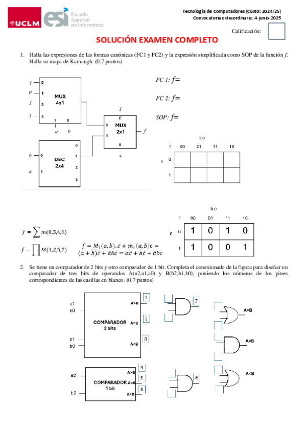 He publicado nuevos examenes de 1º Tecnología de Computadores: Extraordinario-24-25-Resuelto.pdf