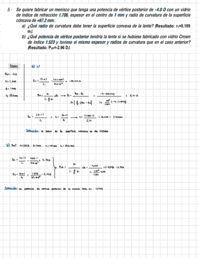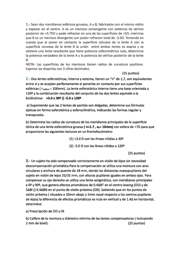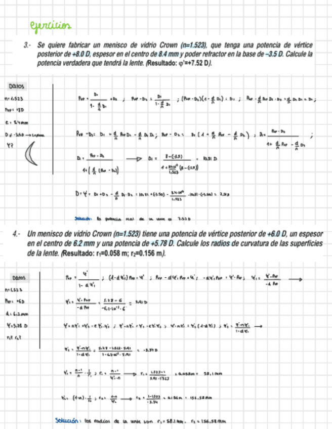 He publicado nuevos ejercicios de 2º Tecnología de Lentes Oftálmicas I: Problemas