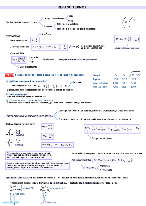 He publicado nuevos apuntes de 2º Tecnología de Lentes Oftálmicas I: Formulas-Tecno-I.pdf