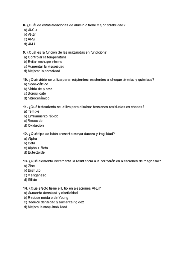 Los enunciado son los que estan subidos a enseñanza virtual, estos son algunos ejercicios de fundiciones y tratamientos térmicos. Aceros NO entra