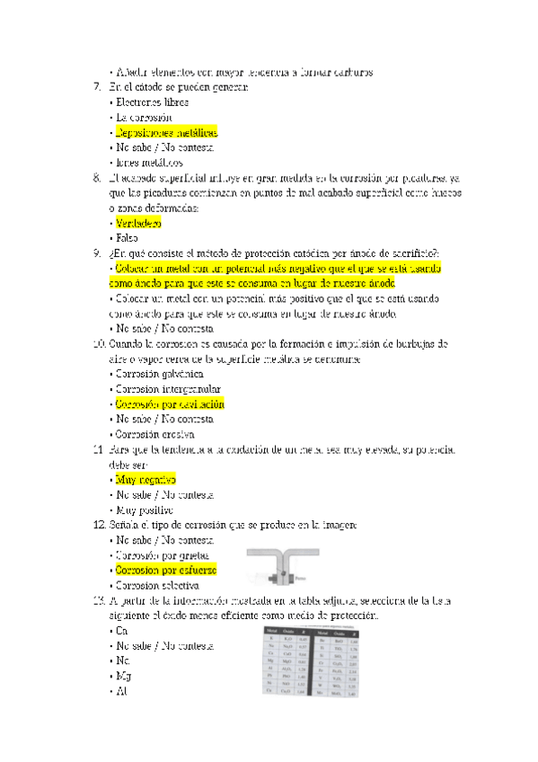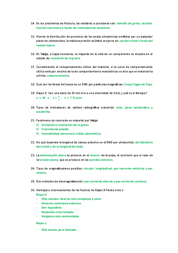 Un pequeño recopilatorio de examen de Fatiga y corrosión
