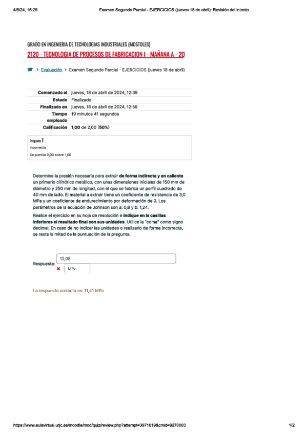He publicado nuevos examenes de 2º Tecnología de Procesos de Fabricación I: Exámenes 2024