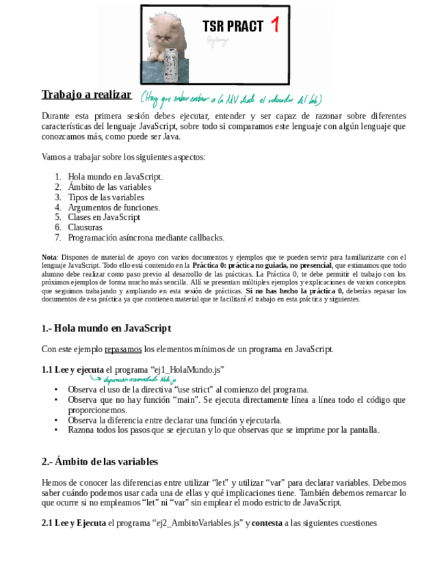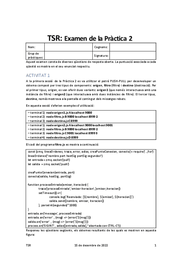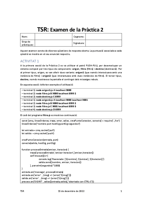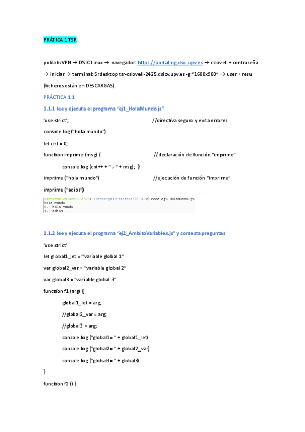 Acabo de publicar una carpeta que incluye todo el contenido que entra para el primer examen de TSR del curso 25/26. El unico contenido que no incluye es: - Teoria del tema2: considero que se aprende mas practicando con los ejemplos de clase y practica - Practica 0: es una practica introductoria que viene bien si no sabes nada de JavaScript.
