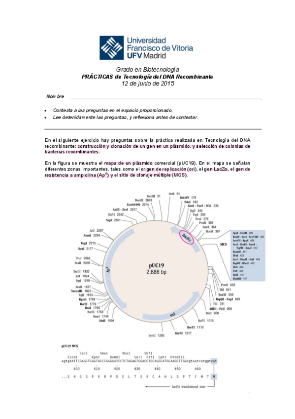 He publicado nuevos practicas de 3º Tecnología del Dna Recombinante: RESUELTO Examen Prácticas TAR.pdf