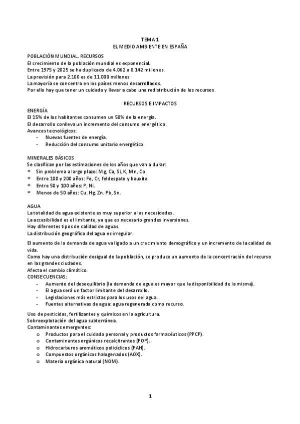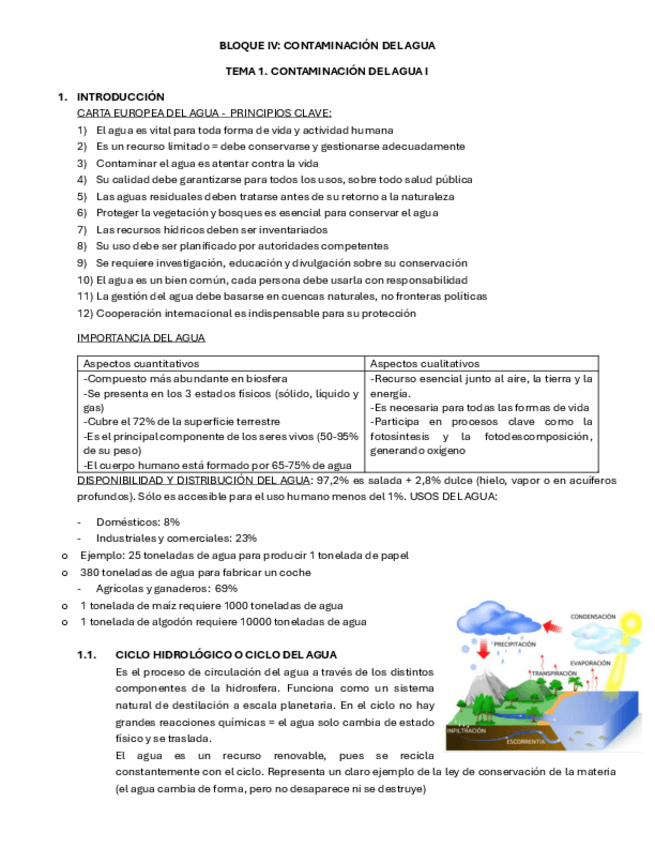 SUPER RESUMEN teoría Tema 1: Contaminación de Aguas. Tecnología del Medio Ambiente. PRIMER PARCIAL