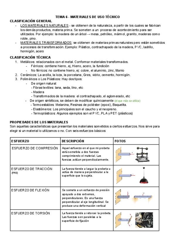 CONTIENE: CLASIFICACION DE MATERIALES, PROPIEDADES, ENSAYOS y MAS CONTENIDOS. Es un resumen de lo más importante de los temas 6,7,8 del libro tecnología e ingeniería I de aulamhe.