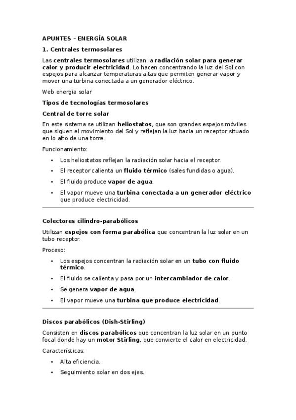 Contiene: - Apuntes de teoría de TODAS las energías que hay renovables y no renovables. - Contiene TODAS las fórmulas que hay en cada energía. - Contiene TODO tipo de ejercicios que hay para un exámen.