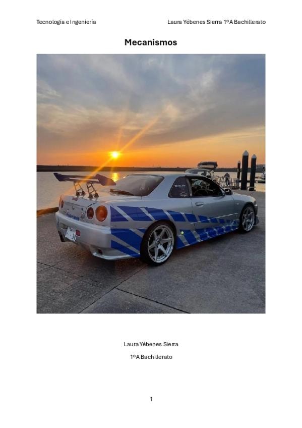 En este documento hay un resumen sobre Sistemas Mecánicos y Motores de 1ºBACH. Es un resumen bastante completo en el que podrás estudiar este temario. La primera página es un índice de los apuntes donde podréis ver los puntos del tema.