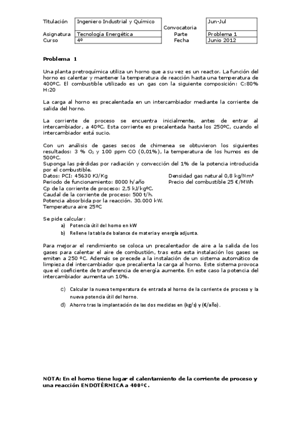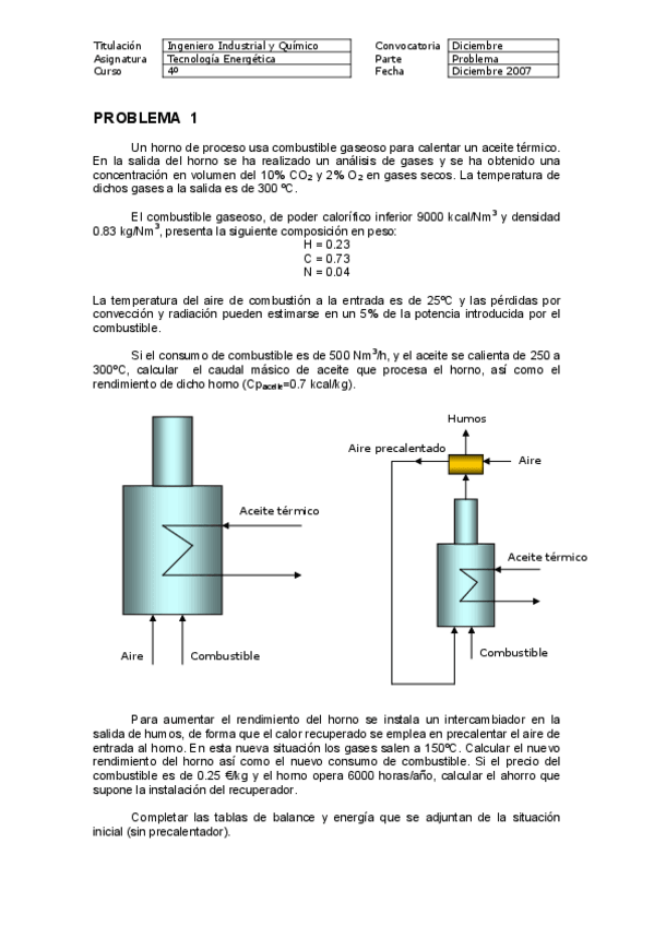 Problemas examen COMBUSTIÓN