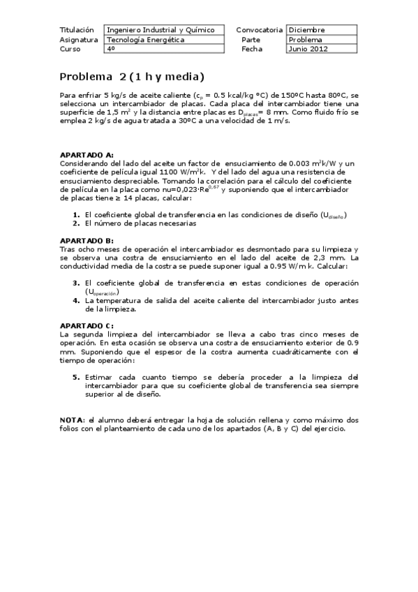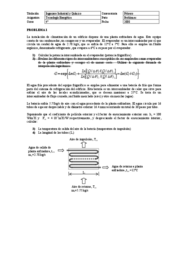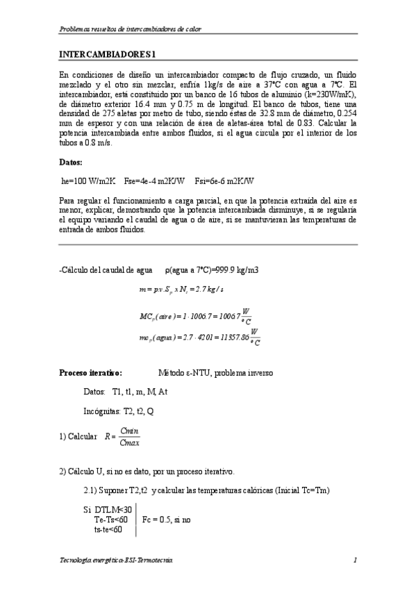 He publicado nuevos apuntes de 3º Tecnología Energética: Problemas examen INTERCAMBIADORES