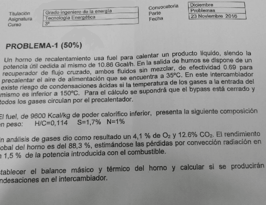 He publicado nuevos apuntes de 3º Tecnología Energética: Problemas examen COMBUSTIÓN