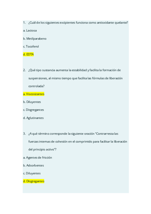 He publicado nuevos test de 5º Tecnologia Farmaceutica Especial: Simulacro tema 5-Excipientes