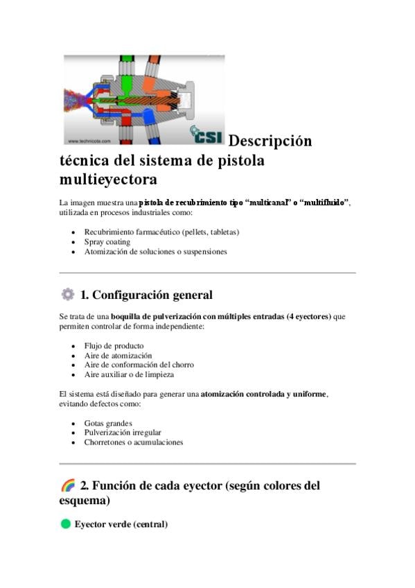 descripición de pistola multieyectora multifluido, con cuatro eyectores cada uno descrito. utilizada par el recubrimiento. a la hora de explicar un tambor de recubrimiento la pistola tambien se debe describir o se puede contar adicionalmente su funcionami