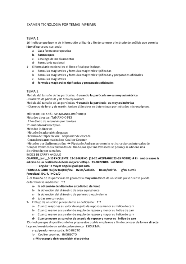 He publicado nuevos apuntes de 3º Tecnología Farmacéutica I: Preguntas-Clase-Tecno.pdf