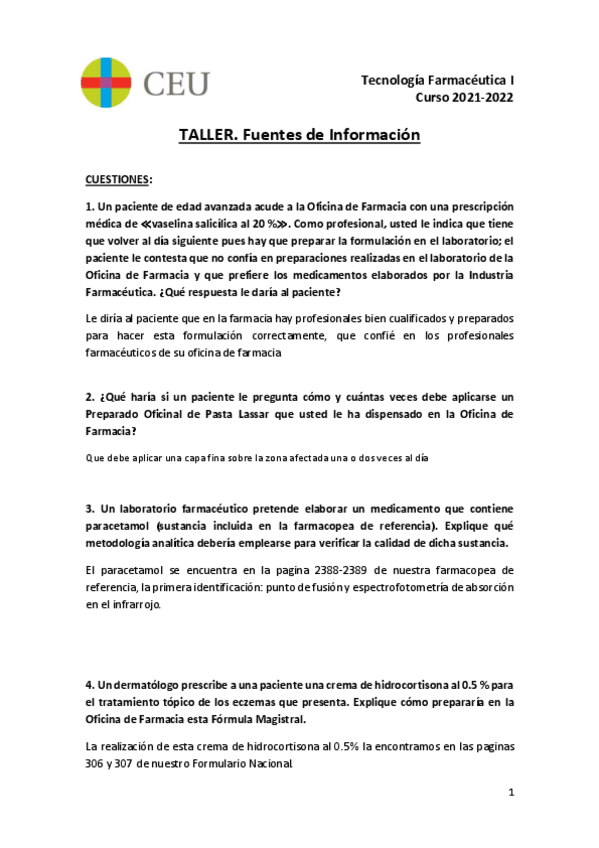 He publicado nuevos apuntes de 3º Tecnología Farmacéutica I: TALLER-CUESTIONES.pdf