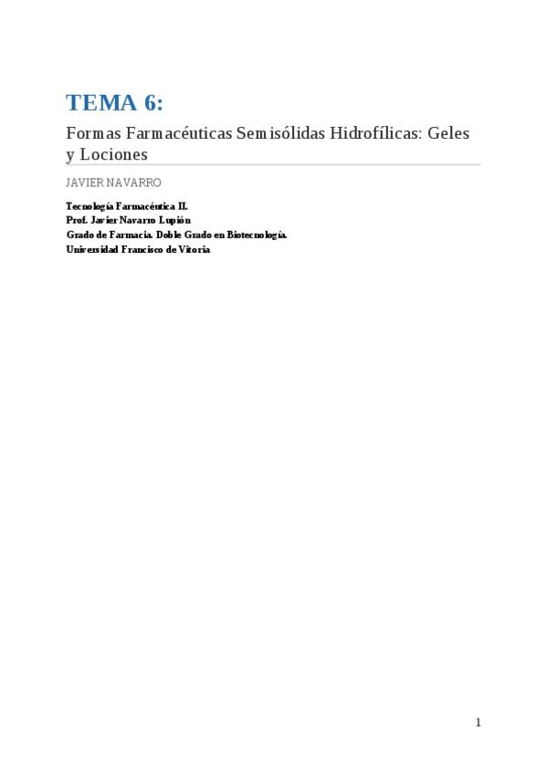 He publicado nuevos apuntes de 4º Tecnología Farmacéutica II: TEMA6FormasSemisolidasHidrofilicas.docx