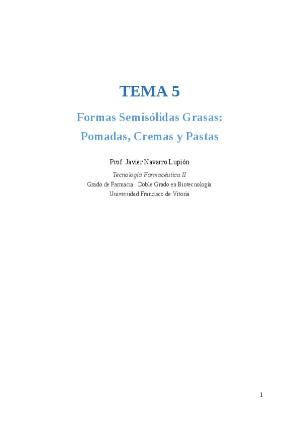 He publicado nuevos apuntes de 4º Tecnología Farmacéutica II: TEMA-8.-FORMAS-GRASAS.-POMADAS-CREMAS-Y-PASTAS.pdf
