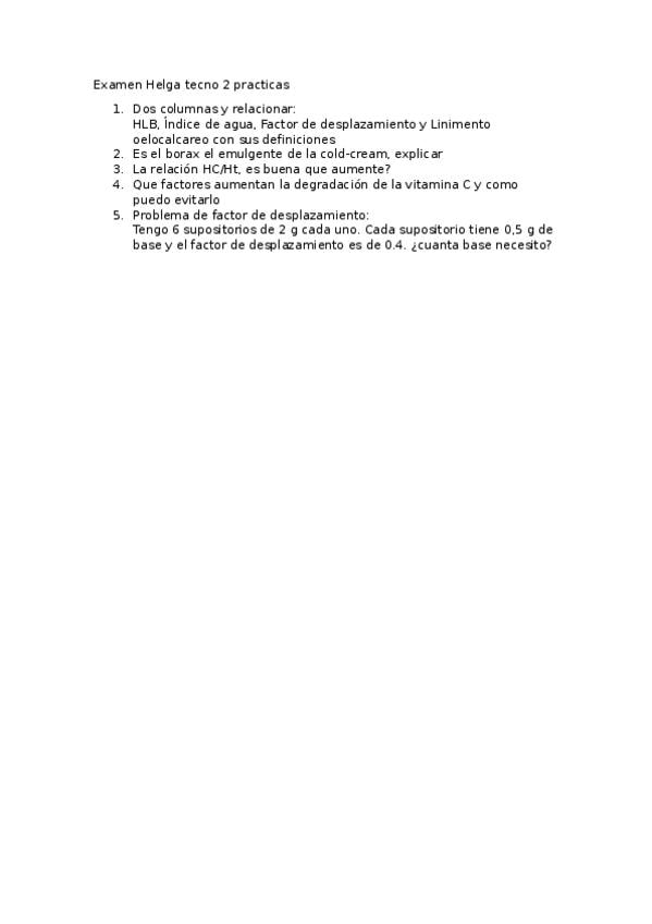 He publicado nuevos examenes de 4º Tecnología Farmacéutica II: Examen-ordinaria-2025 Ana Isabel-preguntas-1-5.pdf
