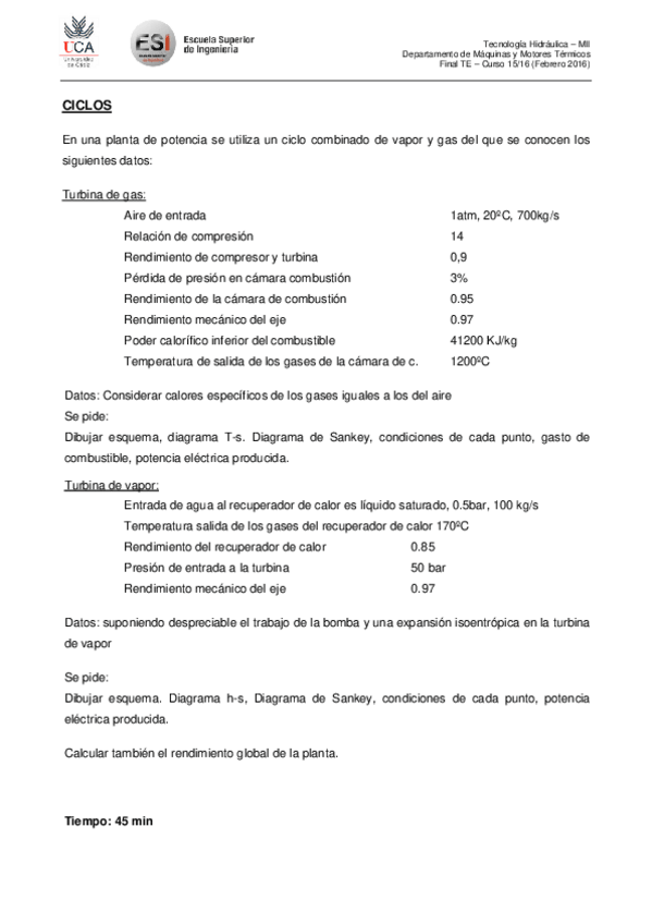 He publicado nuevos examenes de 1º Tecnología Hidráulica: TH Examen Febrero 2016.pdf