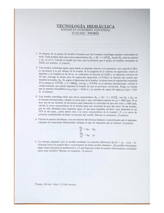 He publicado nuevos examenes de 1º Tecnología Hidráulica: Examenes-Estacionario-Resueltos.pdf