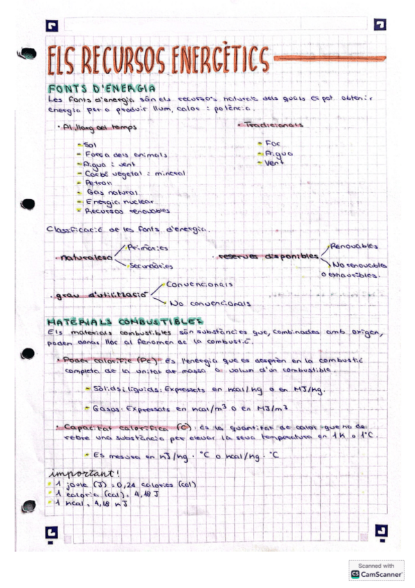 Apunts sobre els recursos energètics amb les seves característiques, tipologies, entre d'altres. Molt útils.