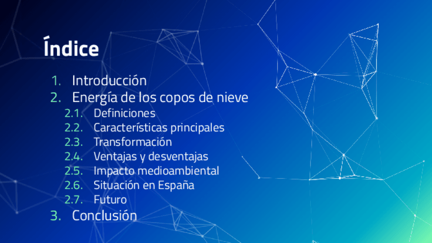 Trabajo sobre las nuevas formas de conseguir energía y, más en profundidad, sobre la energía obtenida a través de la nieve.
