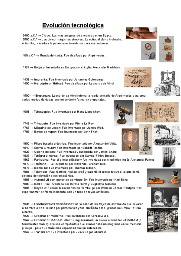Línea del tiempo de los distintos avances tecnológicos a lo largo de la historia.