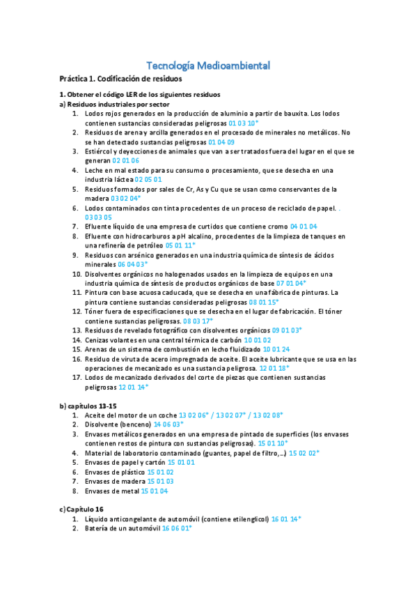 He publicado nuevos practicas de 3º Tecnología Medioambiental: Pr1 Codificación de residuos 21/22 (resuelto).pdf