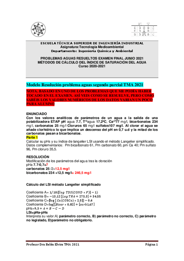 He publicado nuevos apuntes de 3º Tecnología Medioambiental: Problemas examen