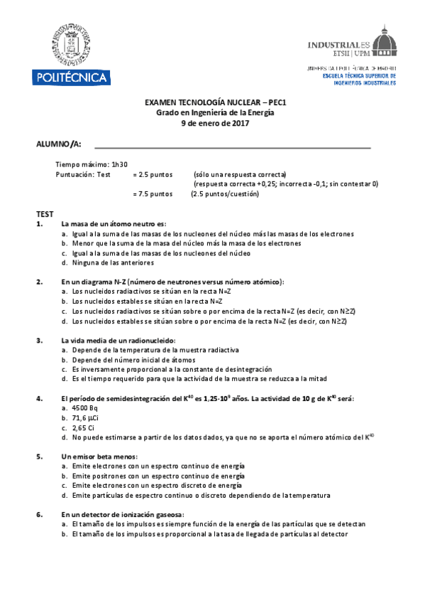 He publicado nuevos examenes de 3º Tecnología Nuclear: PEC1-2024-2025.pdf