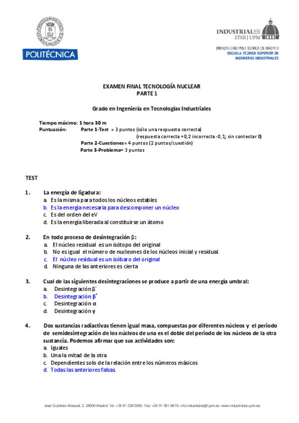 He publicado nuevos examenes de 3º Tecnología Nuclear: Finales resueltas RECOPILACION