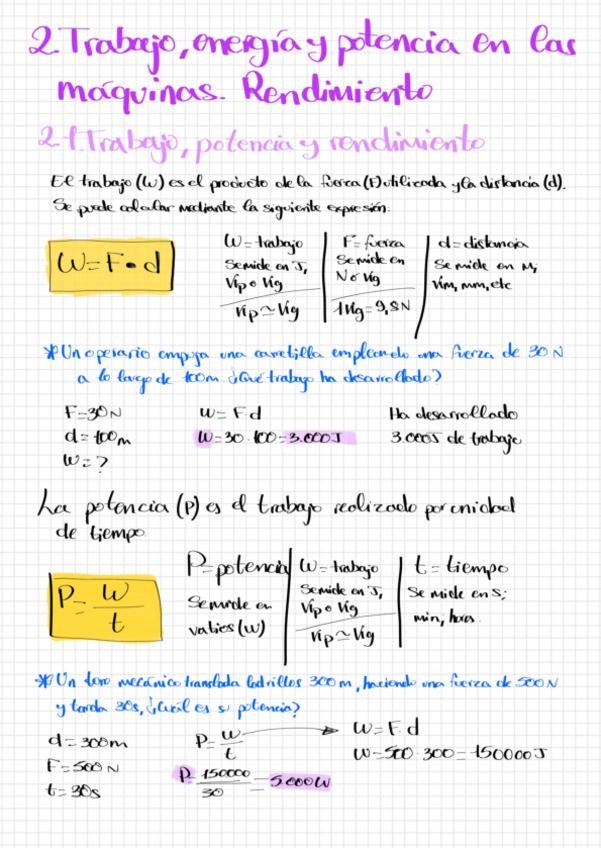 Apunts + taula de la llei general de les màquines simples, conté fórmules