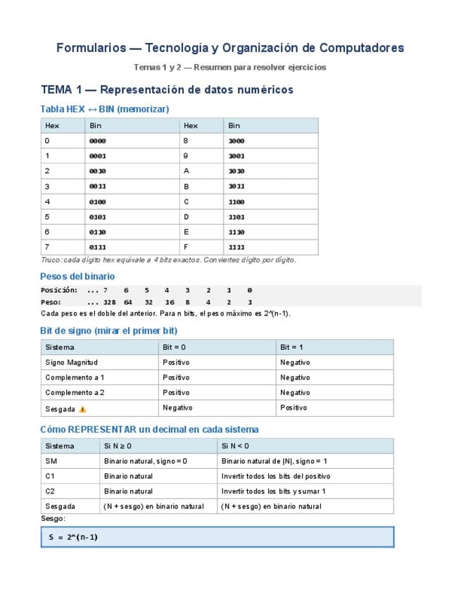 He publicado nuevos apuntes de 1º Tecnología y Organización de los Computadores: TEMA-1-Y-2-resumen-y-formulas.pdf