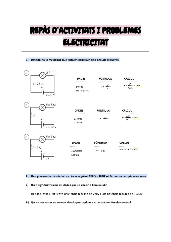 He publicado nuevos ejercicios de 2º Tecnologia: Circuito electrico