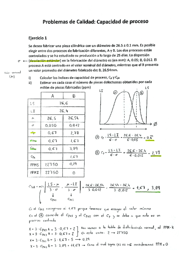 Resúmenes de Calidad y Fabricación, con los ejercicios resueltos en clase intercalados con la teoría.