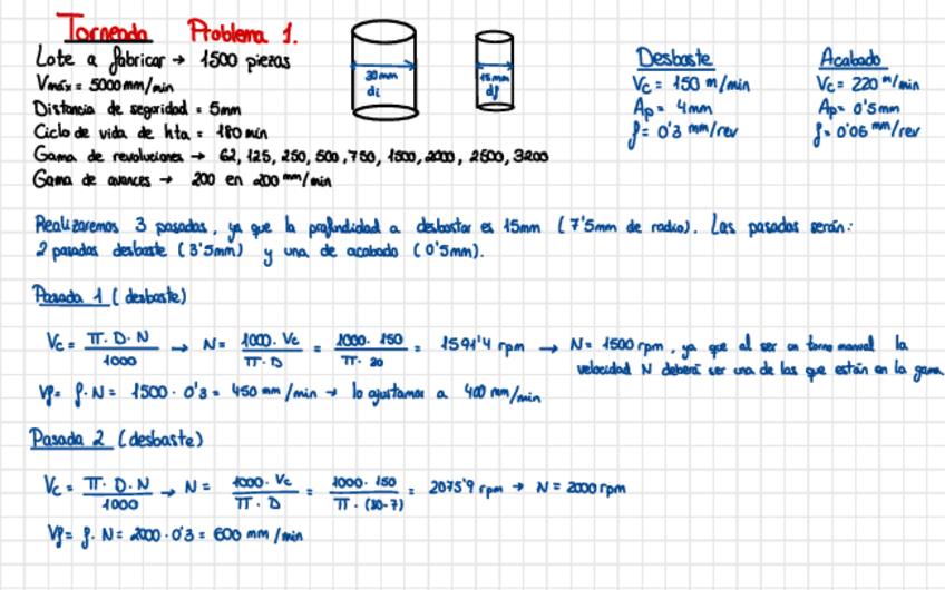 En el ejercicio 1 de torneado, la N en la pasada de acabado es 2500, la máxima de la gama de velocidades. Se me fue y puse 2000 y arrastro el error.