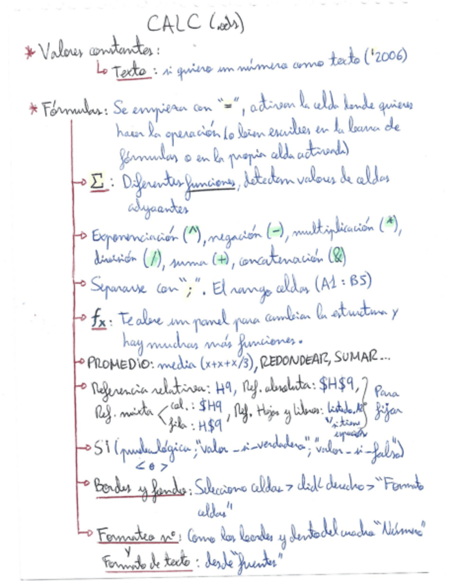 Resúmenes del Calc, LibreOffice y los problemas de informática para el examen final