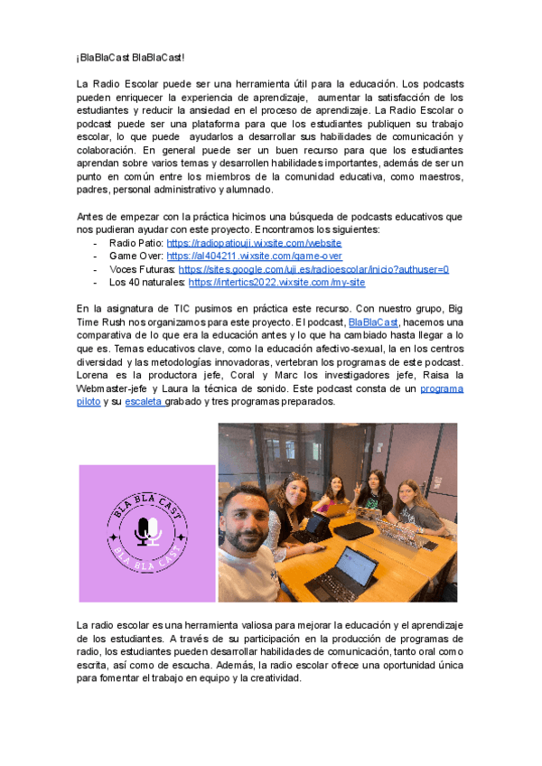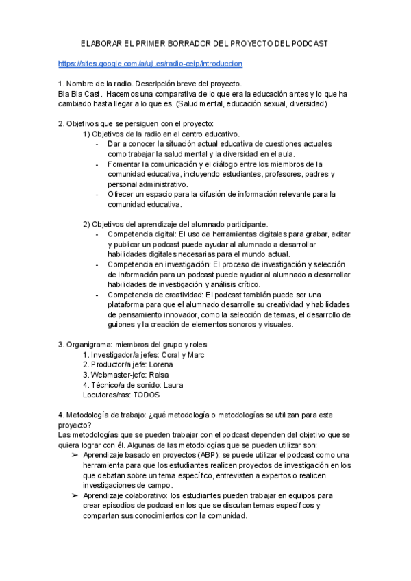 He publicado nuevos practicas de 2º Tecnologías de la Información y la Comunicación en Educación (Educación): ELABORAR-EL-PRIMER-BORRADOR-DEL-PROYECTO-DEL-PODCAST.pdf