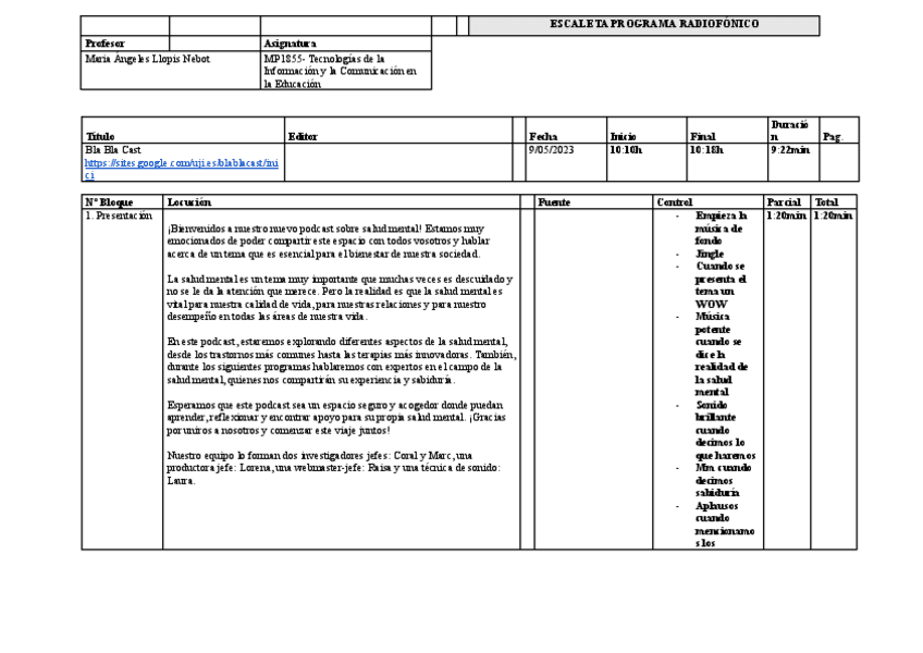 He publicado nuevos practicas de 2º Tecnologías de la Información y la Comunicación en Educación (Educación): Escaleta.pdf