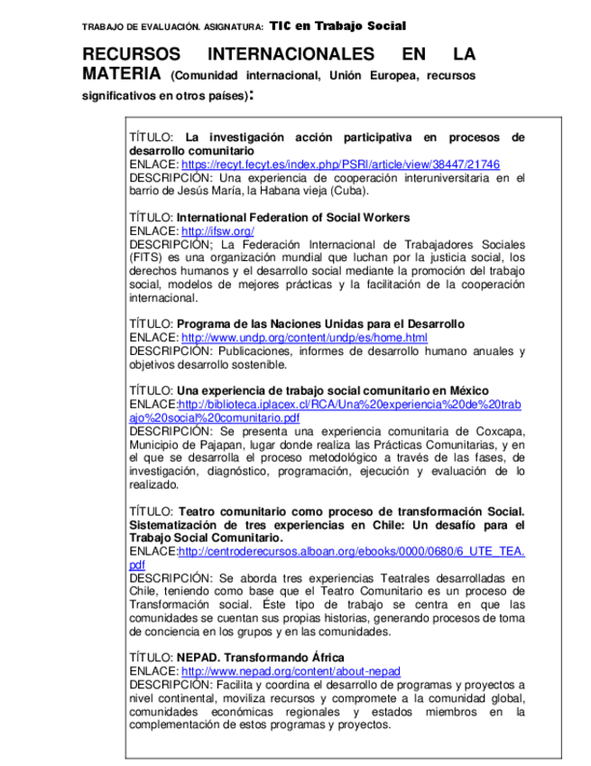 He publicado nuevos trabajos de 2º TECNOLOGIAS DE LA INFORMACIÓN Y LA COMUNICAIÓN PARA EL TRABAJO SOCIAL: Trabajos-tic.docx