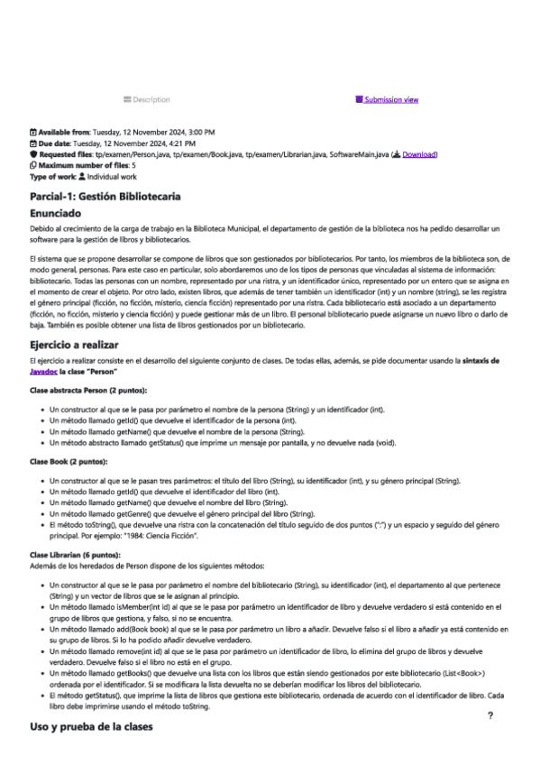 He publicado nuevos examenes de 2º Tecnologías de Programación: PARCIAL-1-TP-LIBRARIAN.pdf