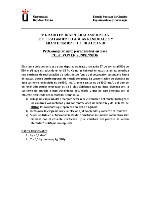 He publicado nuevos ejercicios de 3º Tecnologías de tratamiento de aguas residuales y de abastecimiento: PROBLEMAS-TEMA-7.pdf
