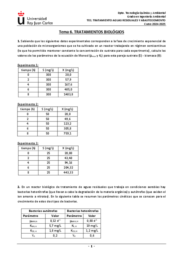 He publicado nuevos ejercicios de 3º Tecnologías de tratamiento de aguas residuales y de abastecimiento: PROBLEMAS-TEMA-2.pdf