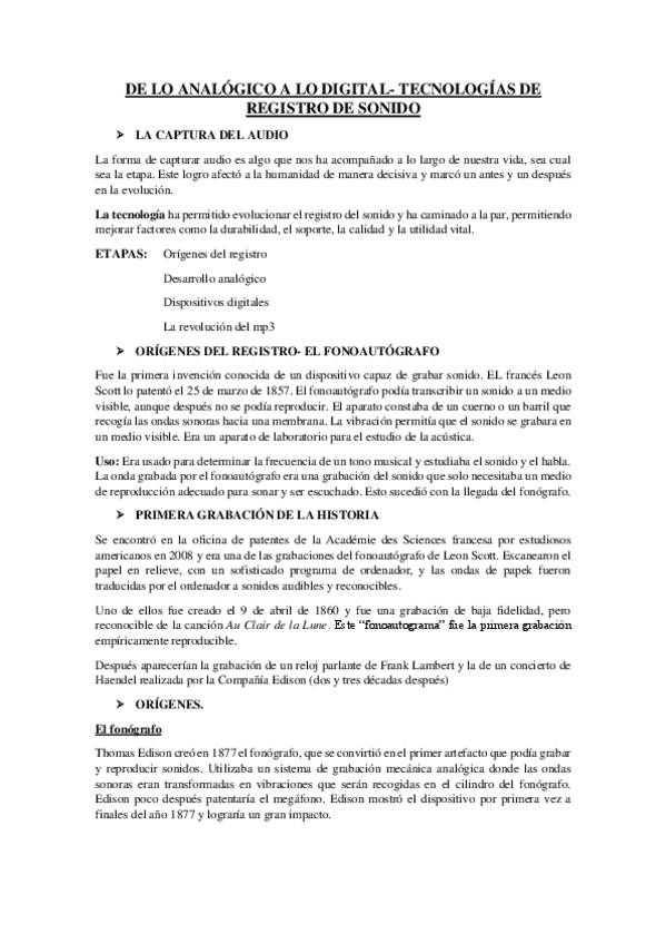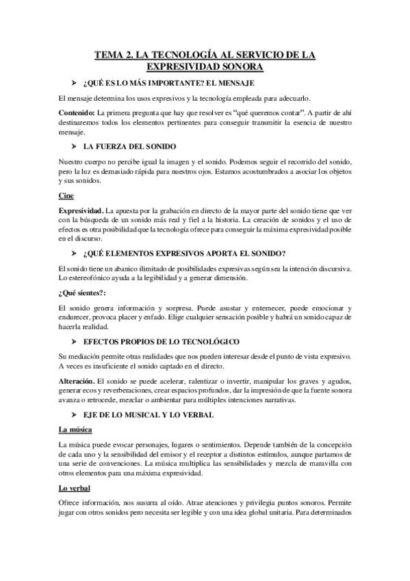Apuntes completos Tecnologías del sonido 1º CCAV USAL curso 2024/25