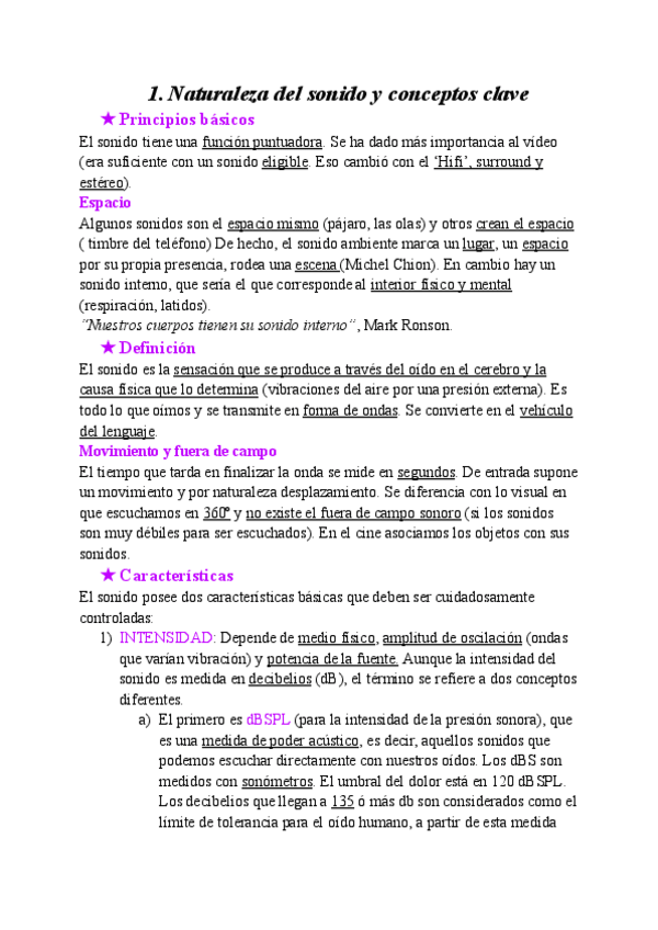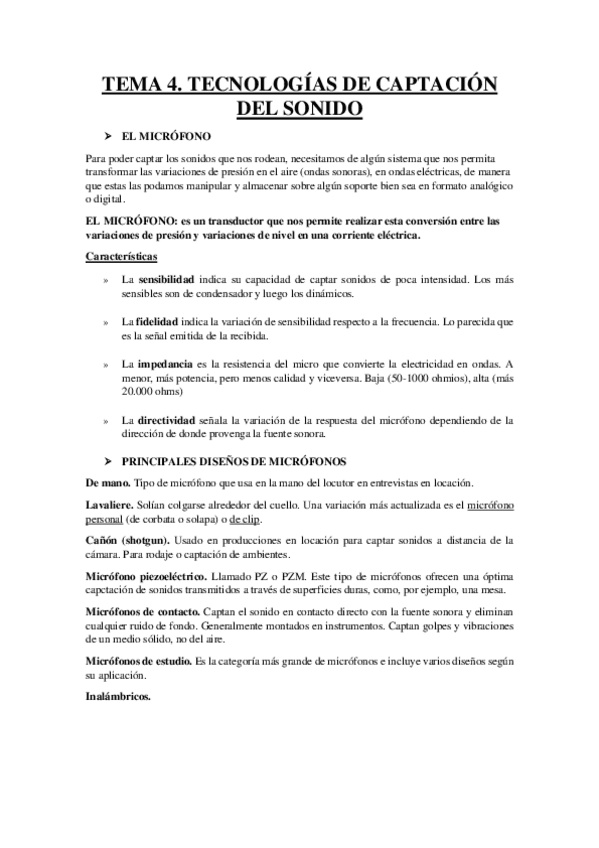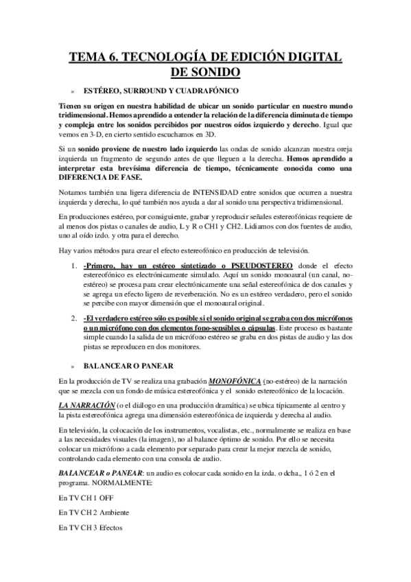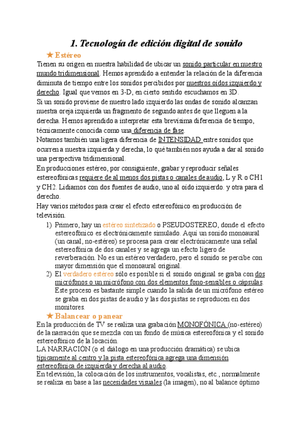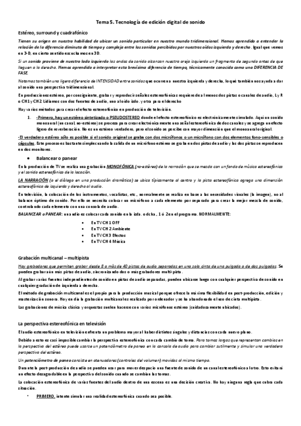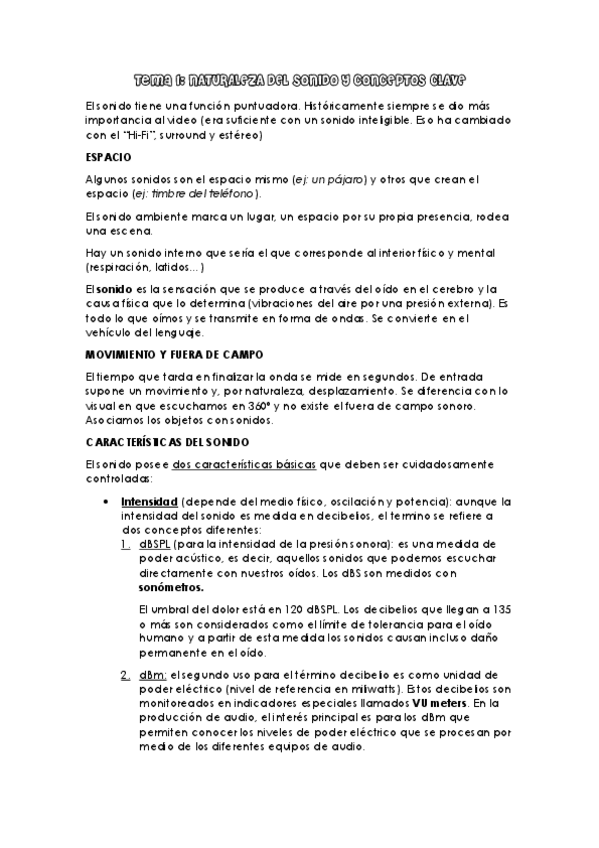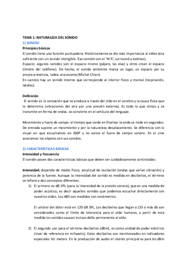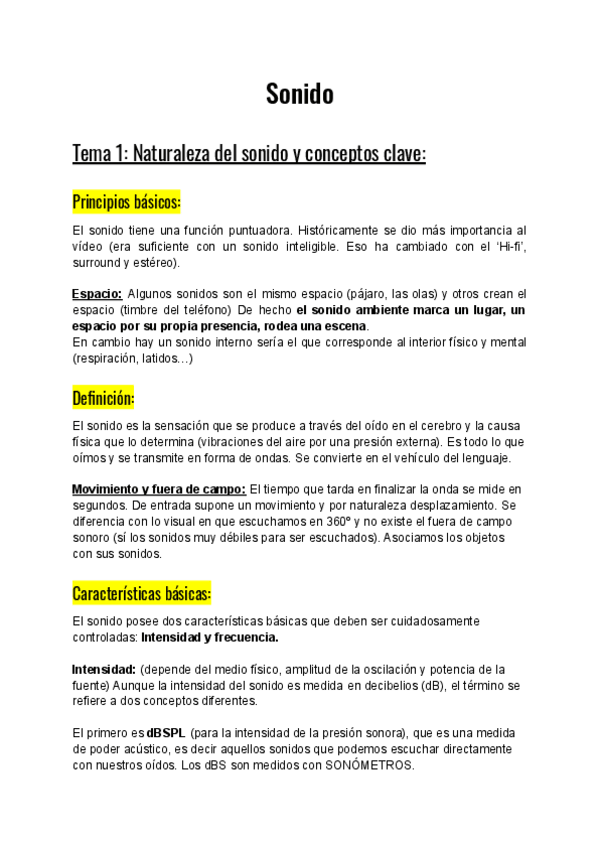 Apuntes completos Tecnologías del sonido 1º CCAV USAL curso 2024/25